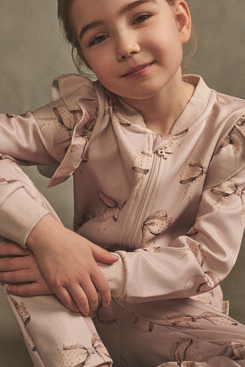 Rosette print features impressive hand-drawn bows, with a dash of picturesque nostalgia of the romantic atmosphere of a magical spring day. The airy atmosphere creates a calm but playful print.