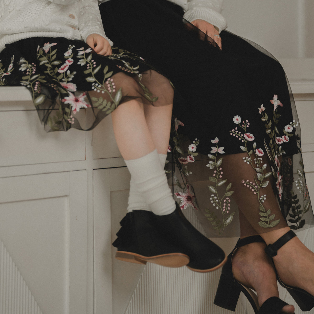 Flower tulle skirt, black