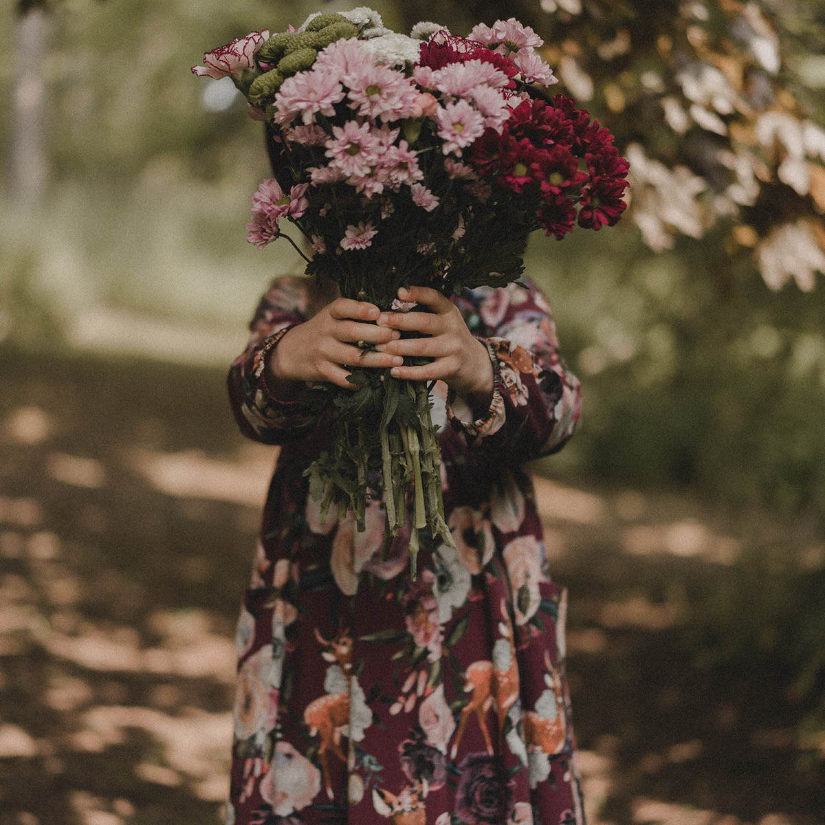 Oh! Look at all these red flowers, inviting us to play in the yard. Maybe there are some berries, too, for us to taste?